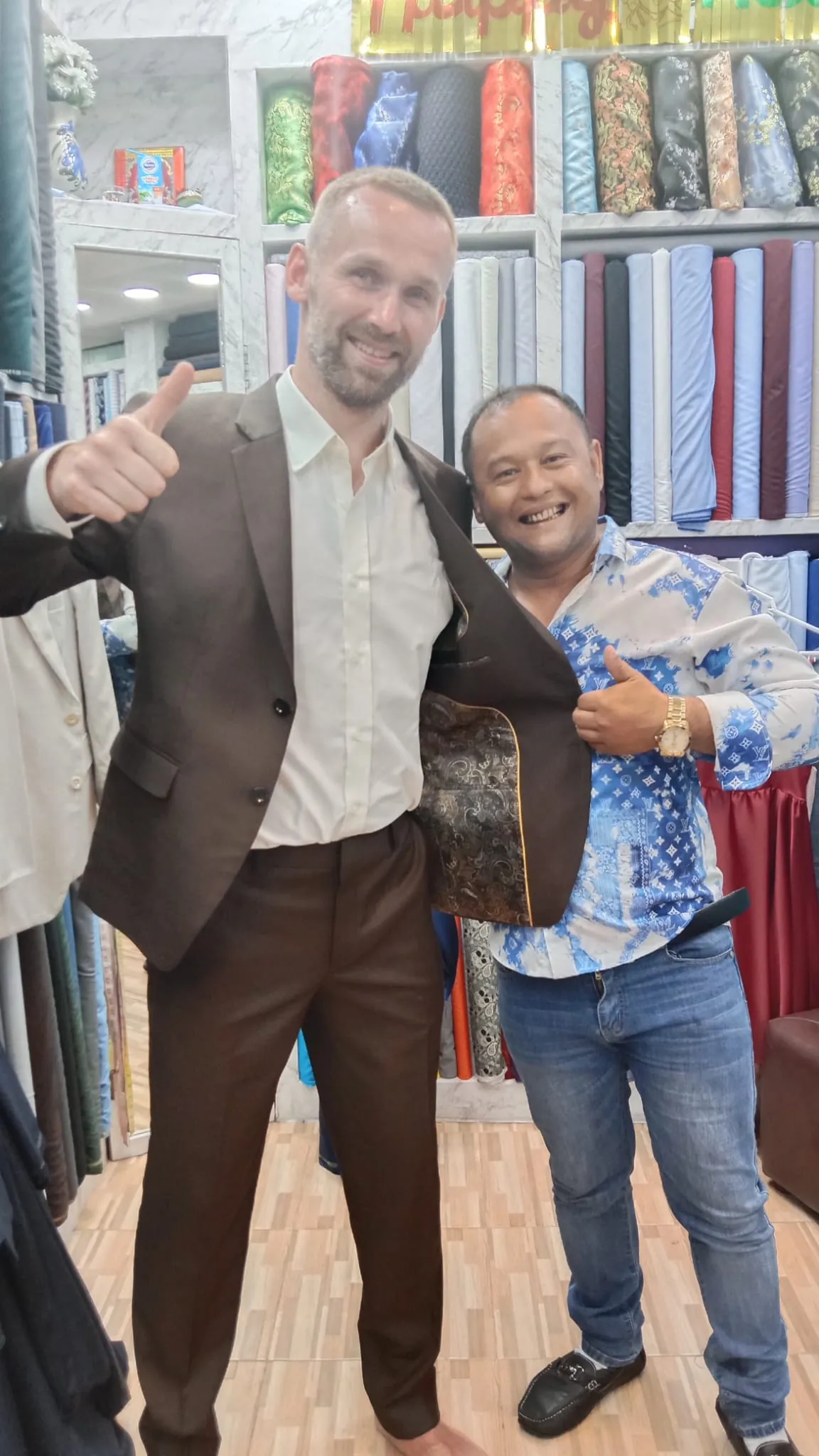 Check out photos of our happy clients wearing the suits and other items we have made.